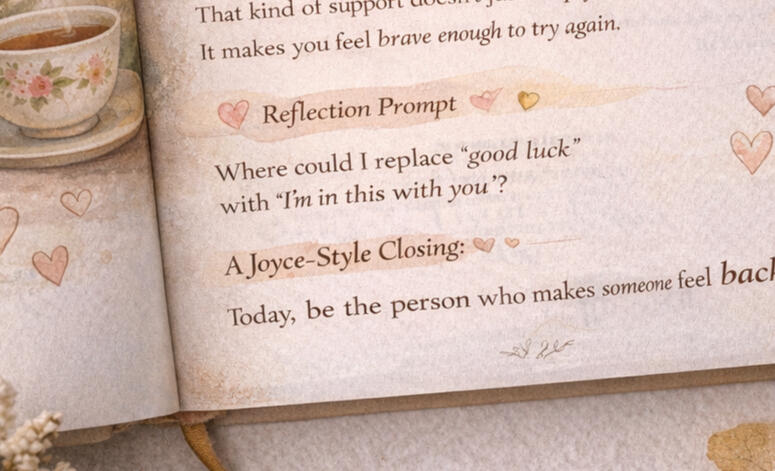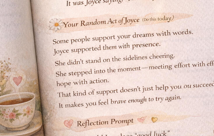 Then, you’re given one simple, doable daily act of kindness inspired by Joyce's example—something that fits into real life. No perfection required, just a willingness to pass the kindness forward.